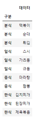 result = pd.concat([data['구분'],data_split], axis=1) # 열방향 연결