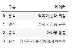result.set_index("구분", inplace=True) # 인덱스 변경
