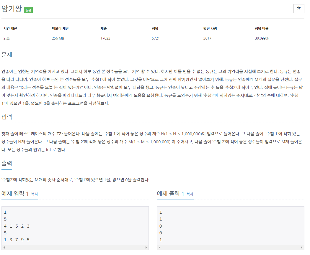 [백준] 2776번 암기왕 (이분탐색)